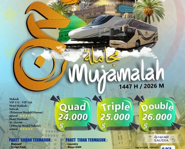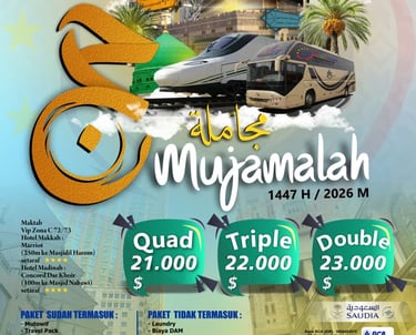 Kami menawarkan layanan perjalanan haji dan umrah, termasuk akomodasi, transportasi, dan bimbingan ibadah dari tim profesional.